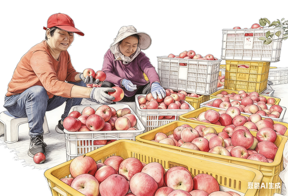 千阳苹果丰收,果农忙着分拣