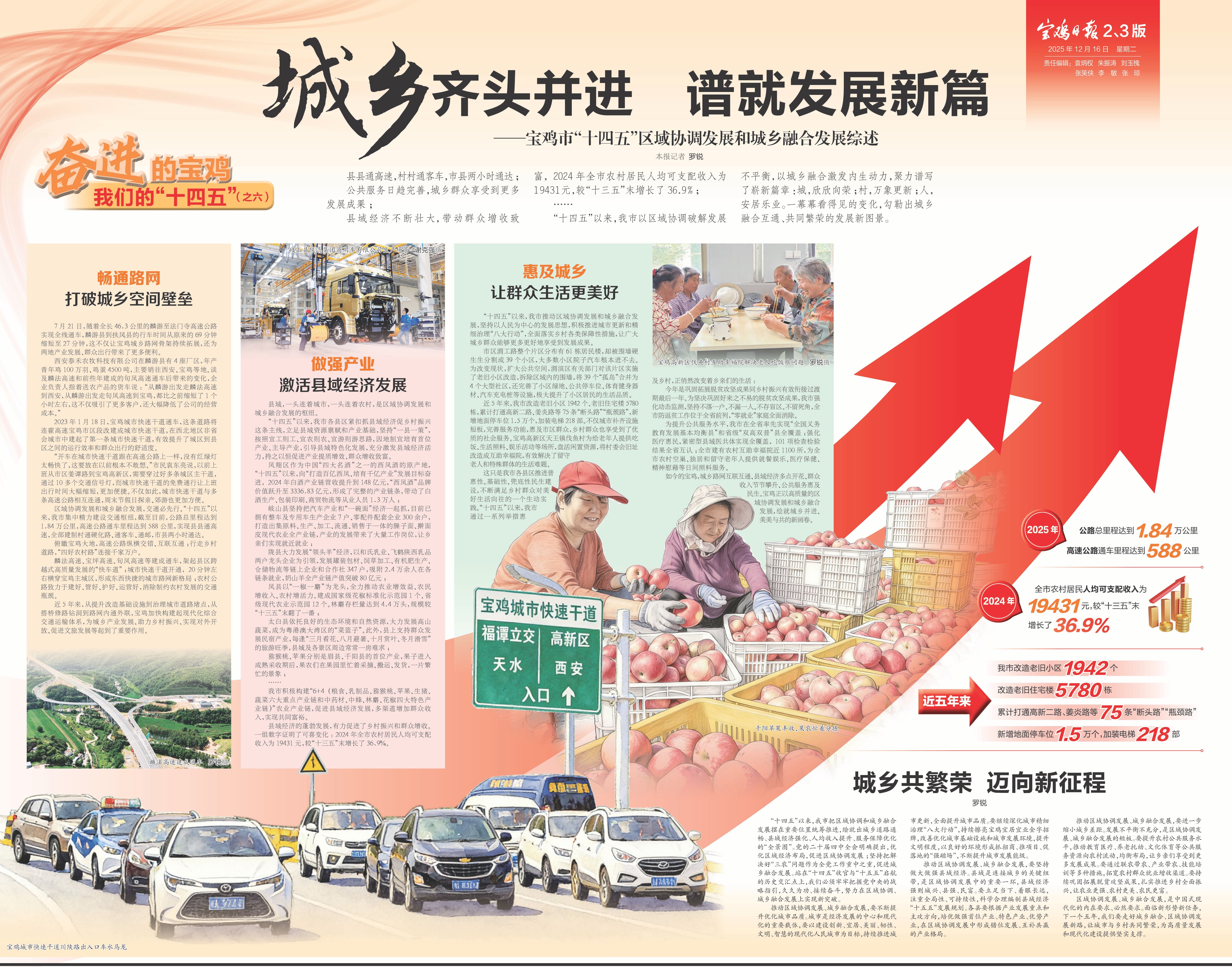 如今的宝鸡,城乡路网互联互通、县域经济多点开花、群众收入节节攀升、公共服务惠及民生。宝鸡正以高质量的区域协调发展和城乡融合发展,绘就城乡并进、美美与共的新画卷。