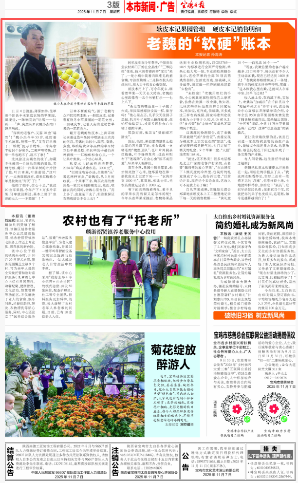 (宝鸡融媒 孙海涛)11月4日清晨,薄雾如纱,笼罩着千阳县丰禾家庭农场的苹果园。田埂边,一阵响亮的“咕呱——咕呱——”声,突然从果农魏小杰的口袋里响起。
