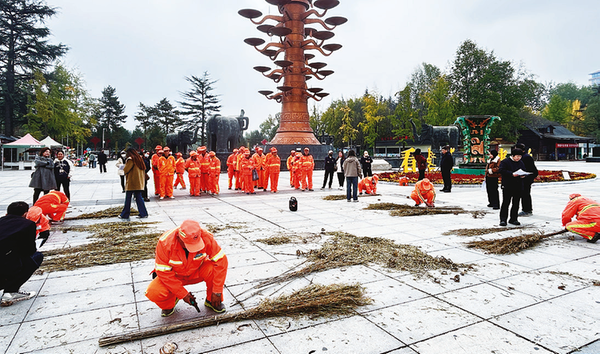 近日,渭滨区环境卫生管理站组织辖区环卫工作者在宝鸡人民公园广场开展技能大比武活动。