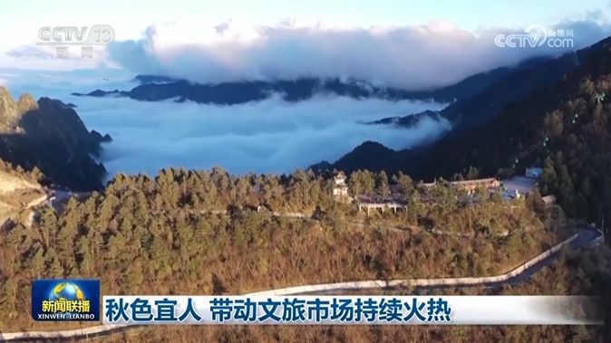 11月2日,央视《新闻联播》报道《秋色宜人 带动文旅市场持续火热》。秦岭主峰太白山出现半山秋色半山雪的美景,游客数量较“十一”期间增加了10%。(来源:央视影音)