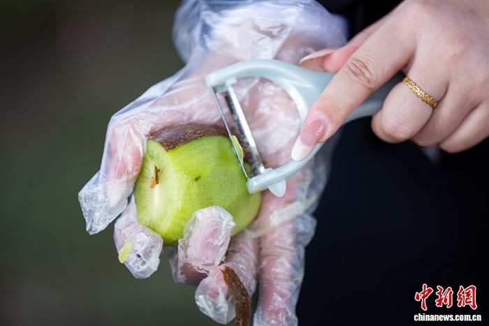 园区工作人员展示猕猴桃。中新网记者 刘星晨 摄