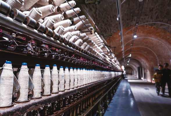窑洞工厂里,由申新铁工厂于1942年制造的捻线机。