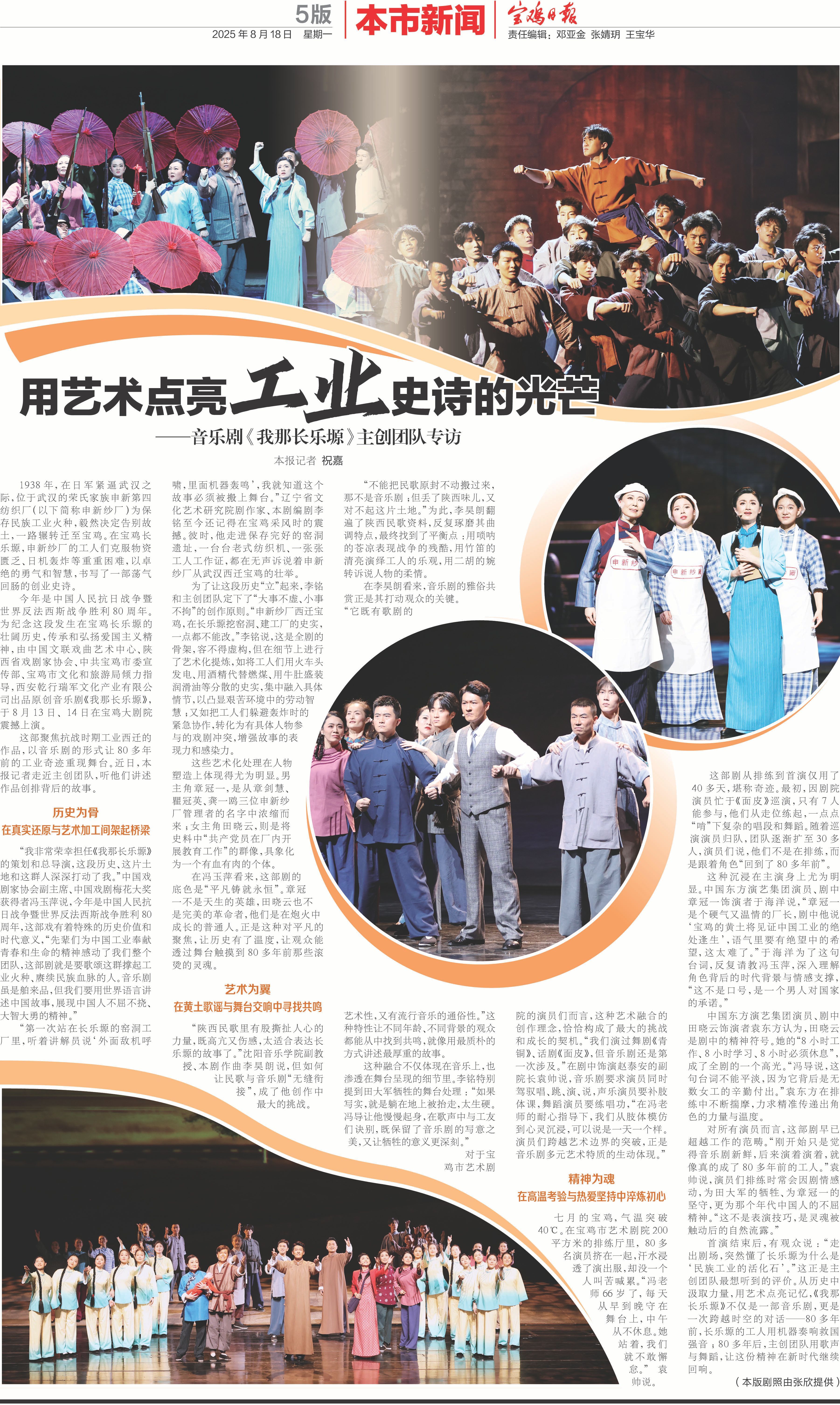 这部聚焦抗战时期工业西迁的作品,以音乐剧的形式让80多年前的工业奇迹重现舞台。近日,本报记者走近主创团队,听他们讲述作品创排背后的故事。