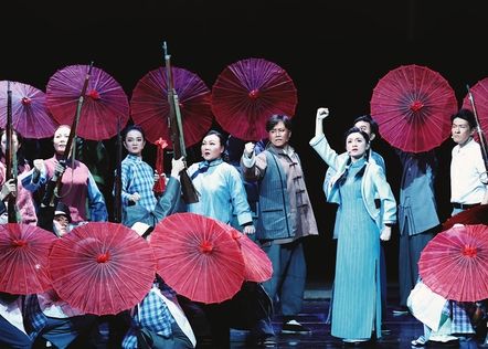 这种融合不仅体现在音乐上,也渗透在舞台呈现的细节里。李铭特别提到田大军牺牲的舞台处理:“如果写实,就是躺在地上被抬走,太生硬。冯导让他慢慢起身,在歌声中与工友们诀别,既保留了音乐剧的写意之美,又让牺牲的意义更深刻。”