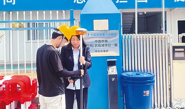 8月4日10时,地表温度持续上升,陈仓区千河镇中国供销(宝鸡)农批城项目一期工地上热浪蒸腾。测绘队员韩艳荣和姜仪头戴安全帽、肩扛全站仪,在毫无遮挡的水泥地面上来回穿梭。烈日下,金属仪器外壳发烫,他们的工作服早已被汗水浸透。“高温会导致仪器参数微变,我们必须反复校准仪器,数据差1毫米都可能影响工程质量。”韩艳荣说。为应对高温“烤”验,市不动产登记中心权籍调查科不仅调整了工作人员的作业时间,还为他们配备了防晒冰袖、清凉油等物资,并安排专人配送绿豆汤等。