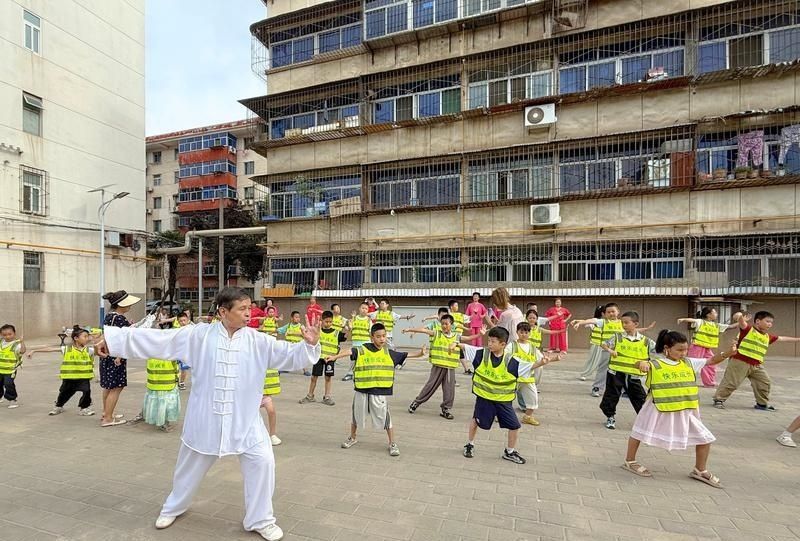银发老人与稚气未脱的孩童共同演绎着动静相宜的太极画卷。
