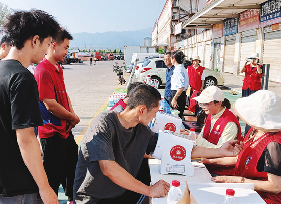 活动现场,医疗志愿者为司机测量血压、检查心脑血管,了解他们的健康状况及生活习惯,提供健康咨询及疾病预防知识等;政策及法律宣传志愿者向司机宣传工伤保险办理等知识,普及劳动人事争议在线调解平台操作流程;爱鸟护鸟志愿队围绕相关法律法规,通过发放宣传彩页、摆放展板等形式,向货车司机讲述保护野生动物的重要性以及非法猎捕、收购、运输、出售野生动物应承担的法律责任,引导大家保护野生动物。