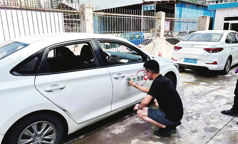 7月21日12时许,记者在市区高新五路乘坐网约车时看到,一辆网约车的左右两侧前门上,张贴有所属网约车平台名称的标识,还在车内副驾中控台位置张贴了官方统一设计的“温馨提示卡”,提醒市民乘坐合规网约车,并注明了相关部门的监管电话。司机牛师傅说:“统一标识让乘客更放心,辨识度也更高了。”