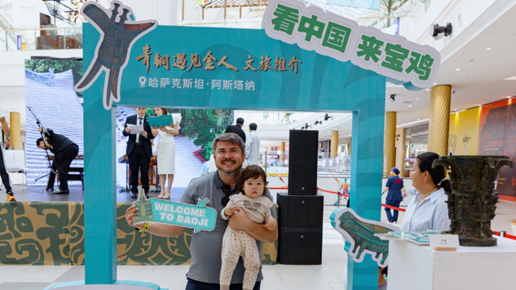 周礼文化节目展演以音乐为媒介,“声”入人心;何尊铭文、青铜器纹饰拓印,印出古老中国底蕴;“丝路长卷”现场共绘,纸语丹青民相亲……6月24日,由宝鸡市人民政府主办的“青铜遇见金人”文化市集,在哈萨克斯坦首都阿斯塔纳MEGA丝路商场举办,近千名当地市民驻足别具风格的摊位,沉浸式体验中华周文化的魅力。