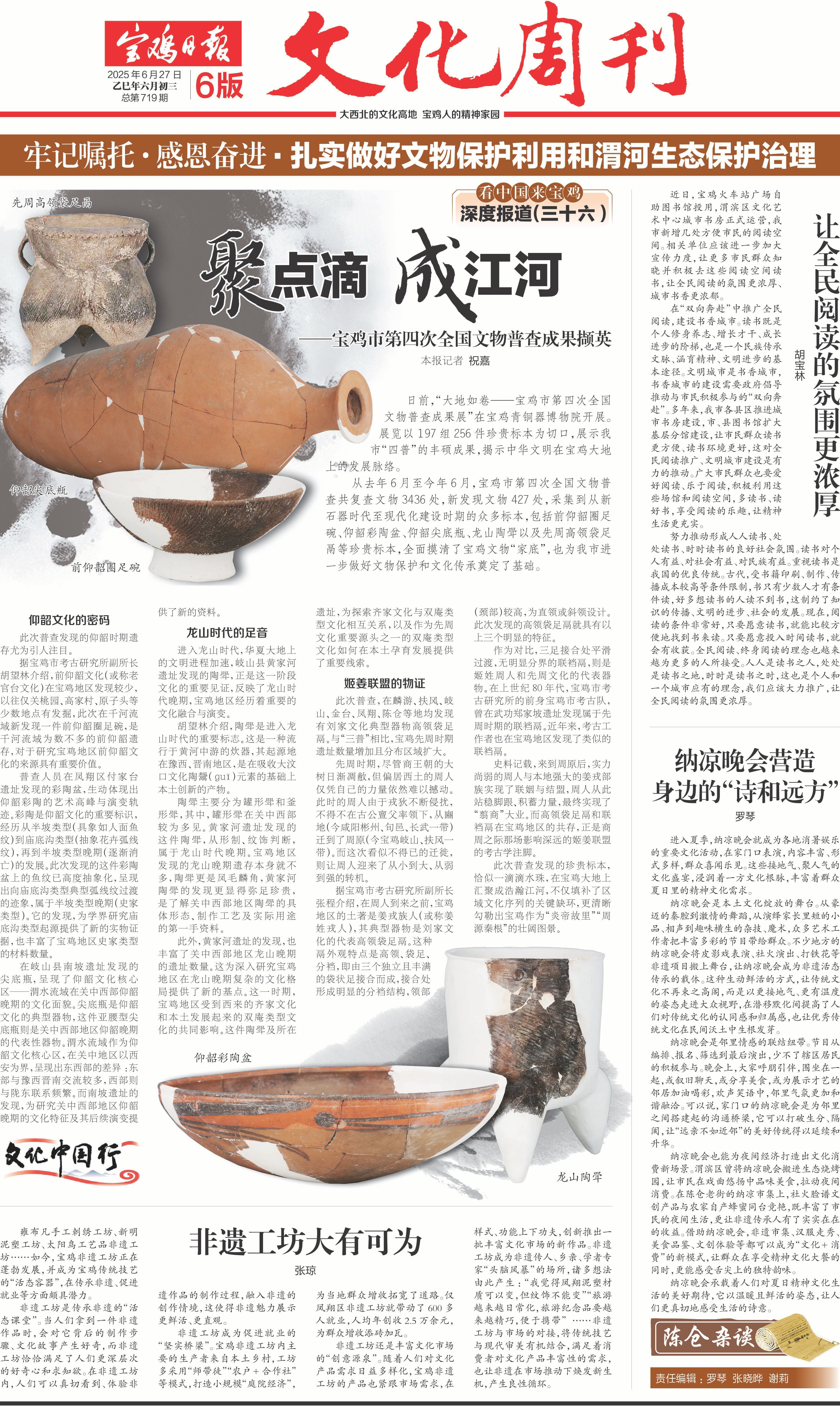 此次普查发现的珍贵标本,恰似一滴滴水珠,在宝鸡大地上汇聚成浩瀚江河,不仅填补了区域文化序列的关键缺环,更清晰勾勒出宝鸡作为“炎帝故里”“周源秦根”的壮阔图景。(宝鸡融媒 祝嘉)