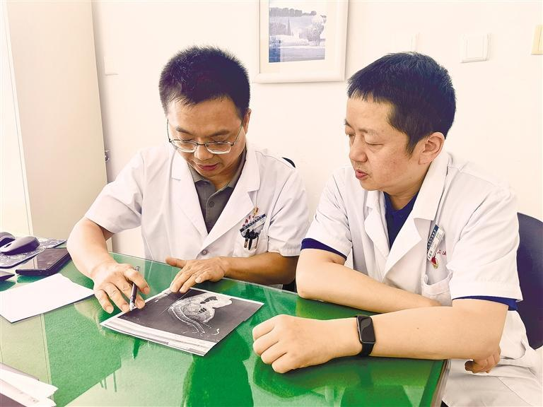 6月6日,在宝鸡市中心医院,王新虎团队在进行术后病例分析。