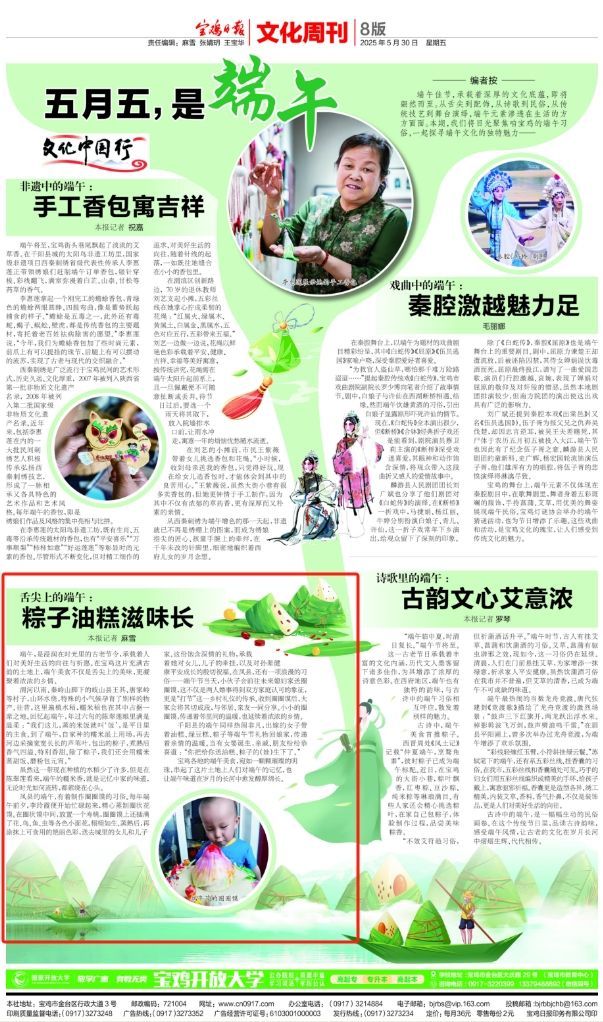 (宝鸡融媒 麻雪)端午,是浸润在时光里的古老节令,承载着人们对美好生活的向往与祈愿。在宝鸡这片充满古韵的土地上,端午美食不仅是舌尖上的美味,更凝聚着浓浓的乡情。