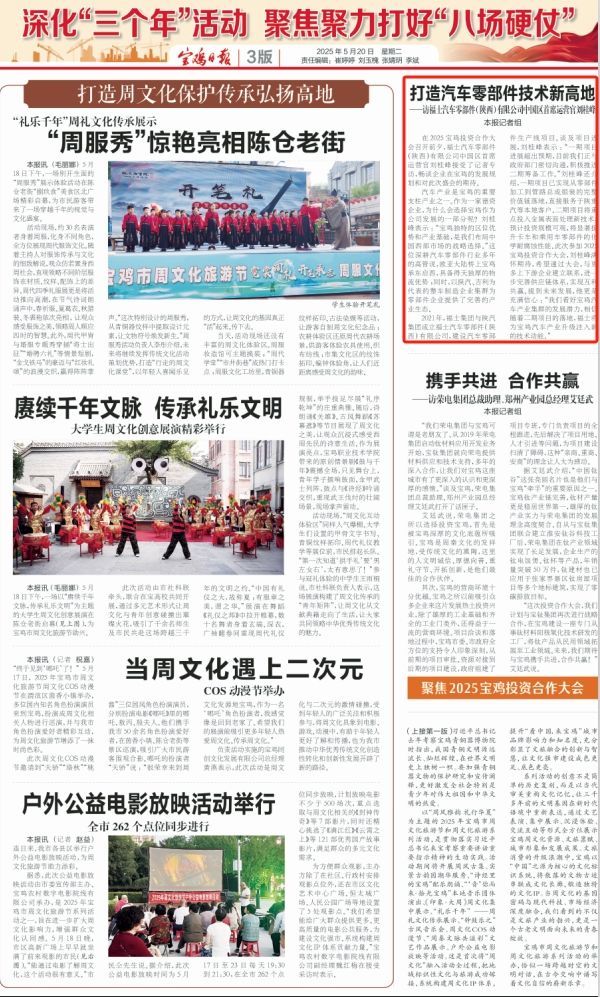 在2025宝鸡投资合作大会召开前夕,福士汽车零部件(陕西)有限公司中国区首席运营官刘桂峰接受了记者专访,畅谈企业在宝鸡的发展规划和对此次盛会的期待。