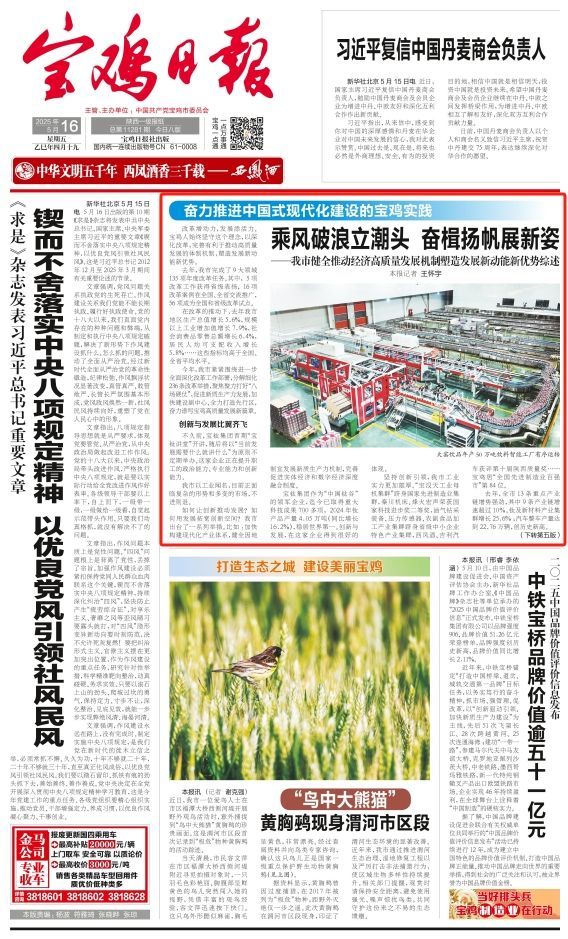 今年,我市紧紧围绕进一步全面深化改革工作部署,分解细化236条改革举措,聚焦聚力打好“八场硬仗”,促进新质生产力发展,加快建设副中心、全力打造先行区,奋力谱写宝鸡高质量发展新篇章。