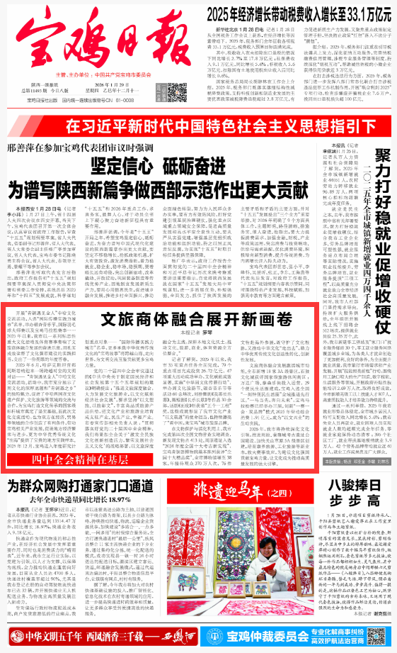 2026年,我市将持续深化文化引领,推进周原、秦雍城考古遗址公园建设,加快关山草原5A级景区创建,培育康养旅游、工业旅游等新业态,放大赛事效应,为建设文化强国贡献宝鸡力量,让文化成为推动高质量发展的强大引擎。