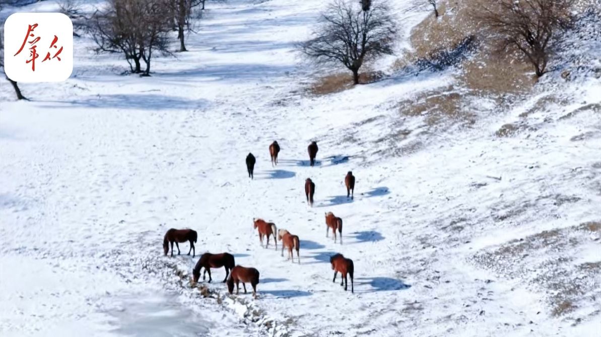 1月22日,雪后初霁,宝鸡市陇县关山草原在冬日暖阳下焕发别样光彩。 通过无人机航拍俯瞰,无垠的雪原在阳光照射下泛起金色光芒,与远山如黛的轮廓共同构成一幅巨型水墨画。在一片纯净的白色世界中,草原风情小镇的红顶蓝墙建筑显得尤为醒目。这些欧式风格的建筑静静伫立,屋顶覆盖着如糖霜般的新雪,整个场景宛若童话秘境。 这幅静谧的画卷并非全然静止。远处,成群的牧马悠然漫步,在雪地上留下串串蹄印,为这片银装素裹的天地注入了勃勃生机。冬日的关山草原,正以其独有的纯净、辽阔与宁静,展现出与夏日截然不同的魅力。(来源:群众新闻客户端)