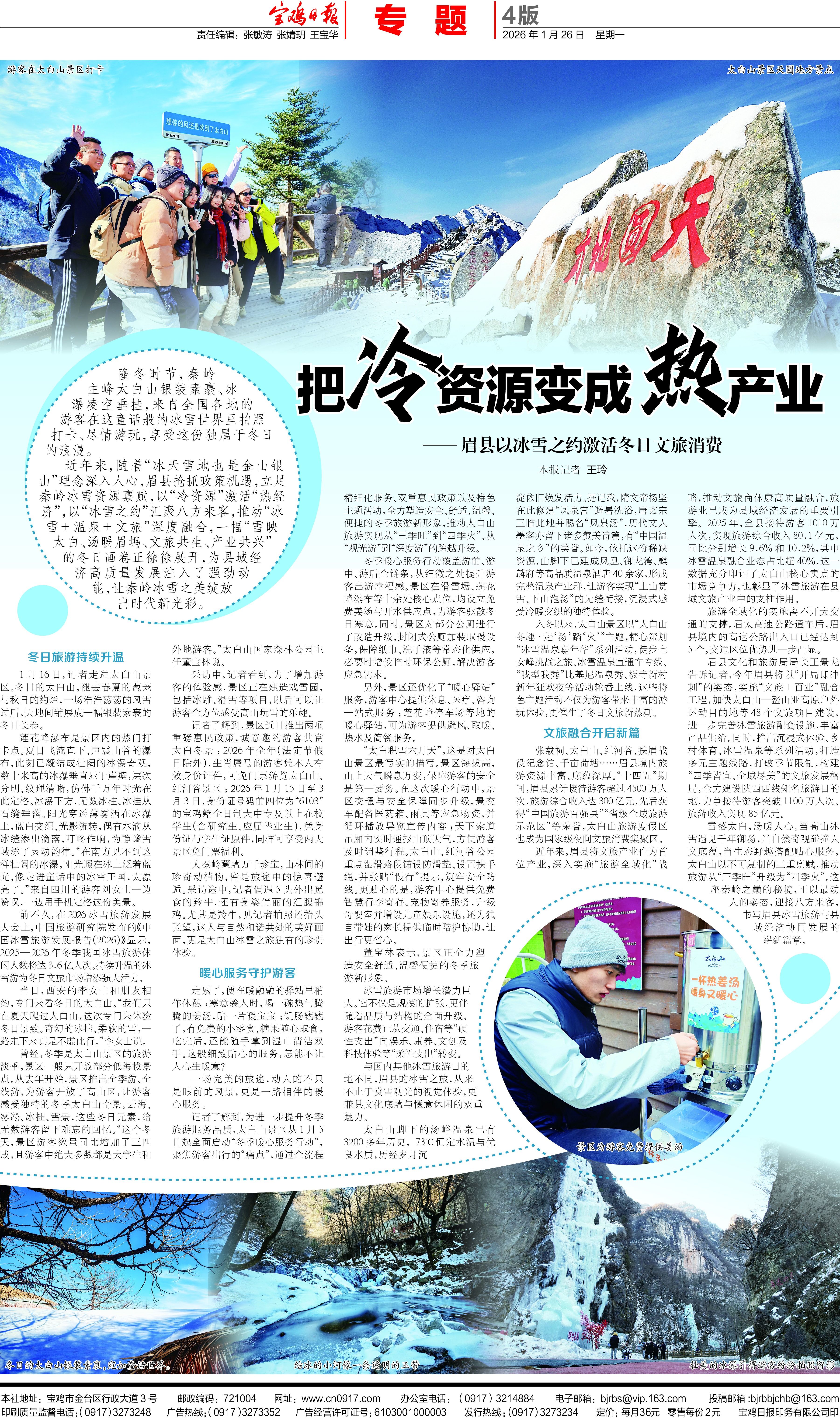 雪落太白,汤暖人心。当高山冰雪遇见千年御汤,当自然奇观碰撞人文底蕴,当生态野趣搭配贴心服务,太白山以不可复制的三重禀赋,推动旅游从“三季旺”升级为“四季火”。这座秦岭之巅的秘境,正以最动人的姿态,迎接八方来客,书写眉县冰雪旅游与县域经济协同发展的崭新篇章。