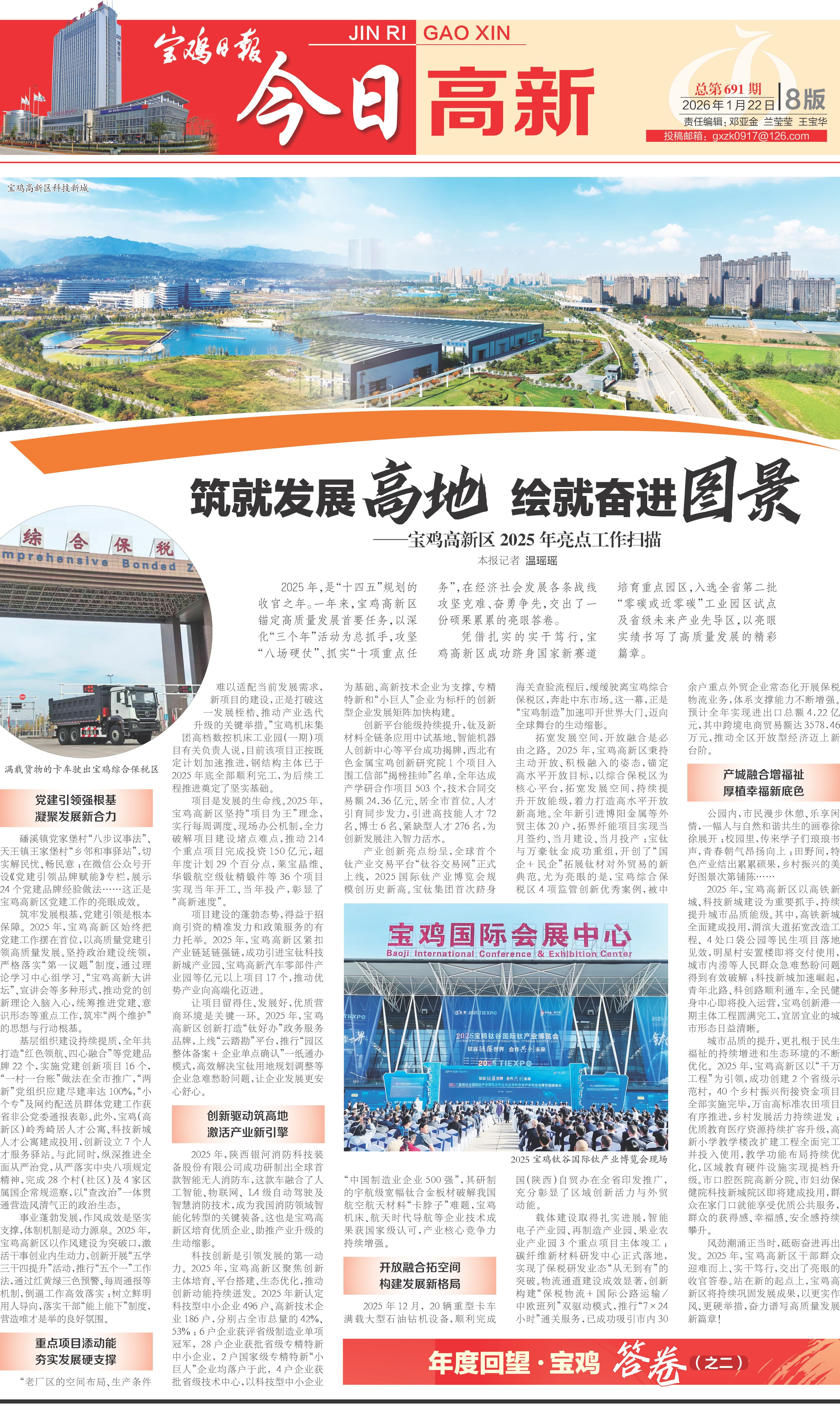 2025年,是“十四五”规划的收官之年。一年来,宝鸡高新区锚定高质量发展首要任务,以深化“三个年”活动为总抓手,攻坚“八场硬仗”、抓实“十项重点任务”,在经济社会发展各条战线攻坚克难、奋勇争先,交出了一份硕果累累的亮眼答卷。