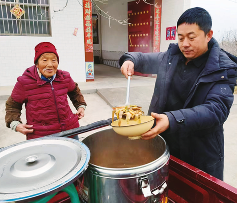 据了解,这项服务于去年12月正式启动。每天中午饭点,许涛和志愿者驾驶三轮摩托车,将刚出锅的饭菜装在保温桶中,挨家挨户上门送餐。遇到行动不便的老人,他们还进屋帮着取碗,将饭菜打好后送到老人手上,用实际行动温暖老人。