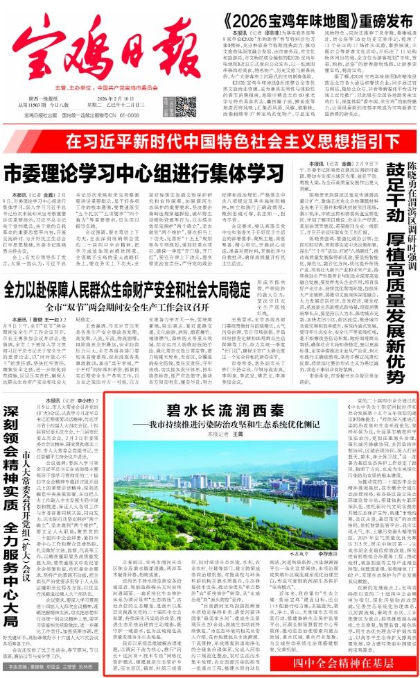 在新的发展起点上,宝鸡将持续以党的二十届四中全会精神为指引,深化污染防治攻坚战,完善生态系统化治理体系,以河湖流域、秦岭生态区、工业集聚区为重点,持续推进源头减排、生态修复、智慧监管、绿色转型,用生态优先理念守护绿水青山,以高水平生态保护支撑高质量发展,奋力谱写美丽中国建设的宝鸡篇章。