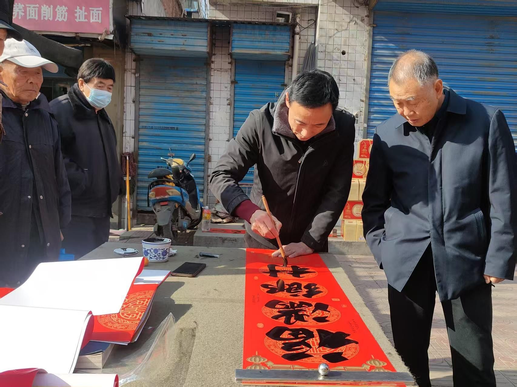 “这春联内容好,平安健康都涵盖了。”“这字真不错,苍劲有力,大气得很。”集市上最热闹的莫过于春联摊。一幅幅红艳艳的春联高高挂起,既寄托着人们对平安健康的祝愿,也展现着笔墨间的功夫。其中一处现写春联的摊位前,围拢了不少人。“福满乡村……”笔锋遒劲有力,笔走龙蛇间,一个个饱满雄健的字便跃然纸上,引来围观群众阵阵称赞。传统的手艺在新时代仍占据着一席之地,人们对美好的事物的喜爱也始终如一,以至于常常驻足观赏。