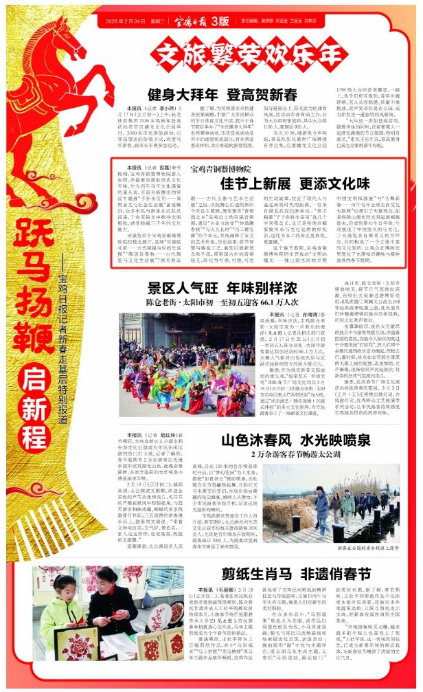 这个春节假期,宝鸡青铜器博物院同步开放的“文明的曙光——陇山渭水间的早期中国文明探源展”与“马舞新春——丙午马年全球生肖文化大联展”也吸引了大量观众。前者将陇山渭水间文明起源娓娓道来,后者则紧扣生肖年份,生动展现了中国悠久的马文化。三大展览各有侧重又相互呼应,共同构成了一个立体丰富的文化矩阵,让观众在博物馆里度过了充满知识趣味与精神滋养的春节假期。