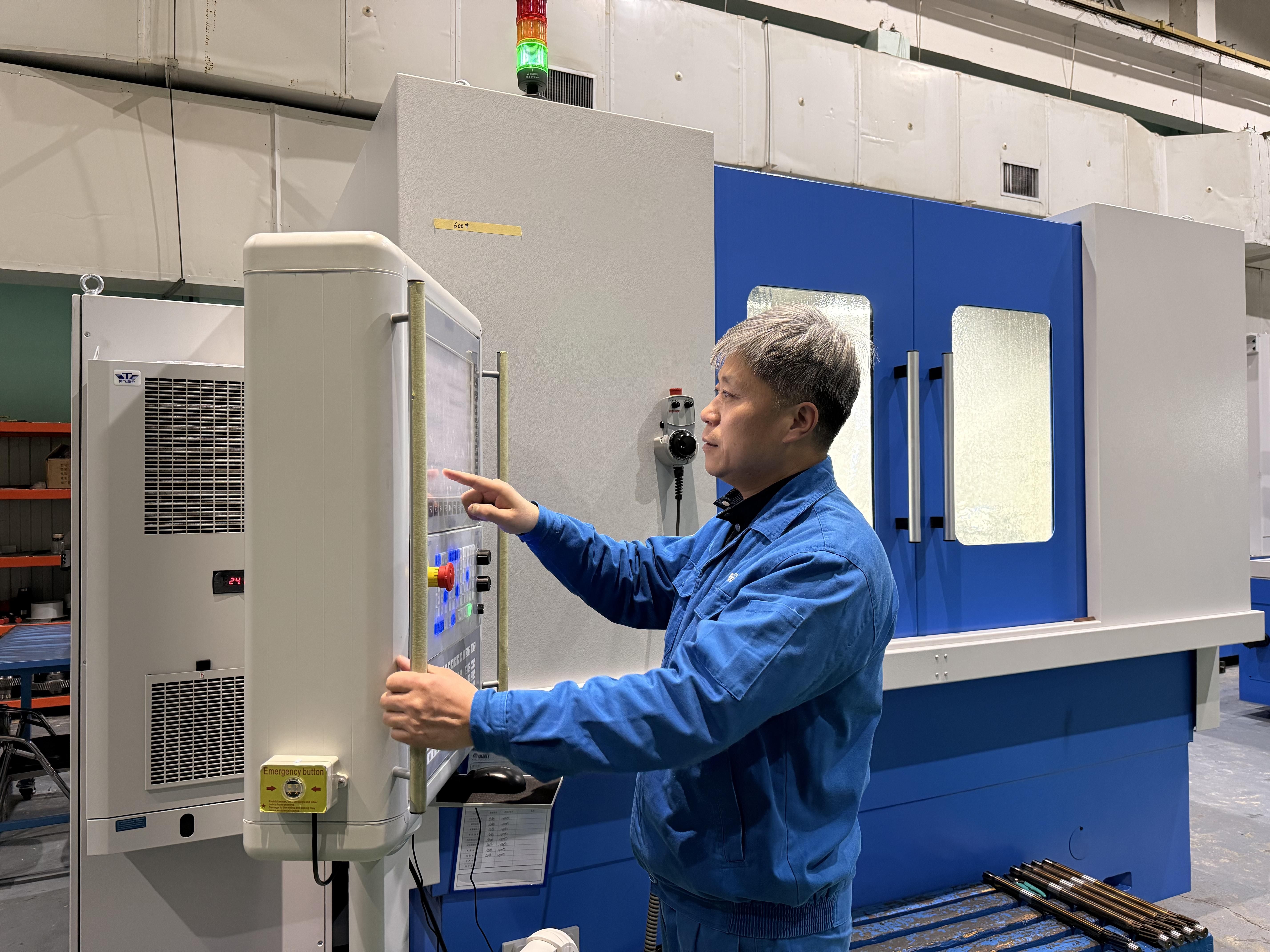 连日来,位于宝鸡市的秦川机床工具集团股份公司总装一车间一片繁忙。图为总装一车间装配钳工、特级技师侯海峰在测试机床(资料照片)。
