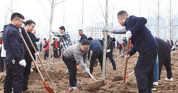 3月12日,眉县城区机关单位400余名干部职工齐聚县滨河新区开展义务植树活动,共栽植树苗1600株,以实际行动为全县生态文明建设再添新绿。