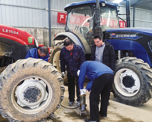 在千阳县张家塬镇柳家塬村的农机作业现场,技术人员围绕拖拉机、旋耕机、播种机等春耕主力农机具,采取“逐台排查、逐件检修、现场指导”的方式,全面开展安全检查、故障排查、调试保养和技术培训工作。检修过程中,技术人员重点聚焦农机具发动机、传动系统、制动转向装置、液压系统及安全防护设施等关键部位,仔细检查每一个零件、每一处接口,精准排查松动、磨损、老化等安全隐患,对发现的问题当场进行维修调试,确保农机具“不带病、不缺位”。