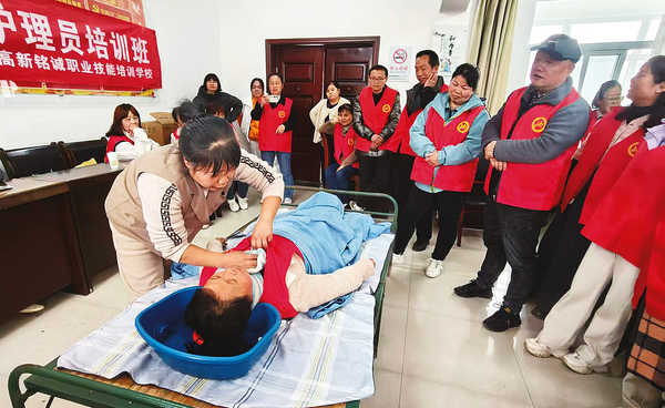 (宝鸡融媒 鲁淑娟)农村大龄劳动力就业难,养老院护理员缺口大。面对这“两难”问题,近日,金台区金河镇联系宝鸡高新铭诚职业技能培训学校,在石桥村开设养老护理员培训班,为辖区群众提供“培训+考证+就业”一体化服务,精准助力辖区群众就业增收。