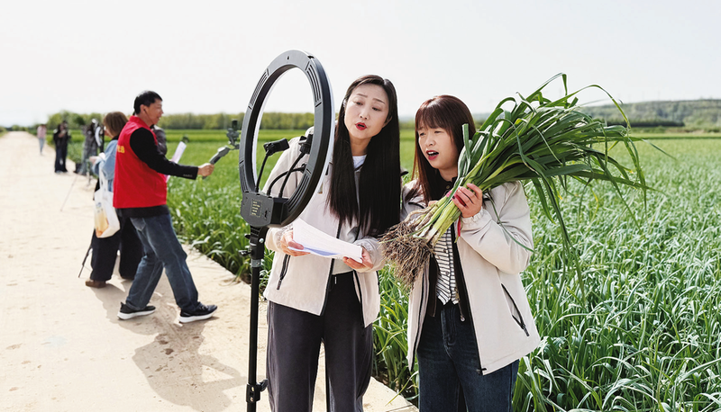 (宝鸡融媒 景璐)4月24日,宝鸡供销直播电商联盟助力乡村产业振兴进基地活动启动。16名主播走进陇县城关镇堎底下村蒜苗种植基地直播带货,助力乡村振兴。