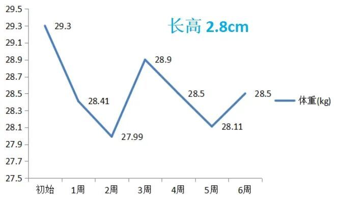 5号拔节小将虽6周内体重变化不大,却成功长高2.8 厘米,实现了“纵向突破”: