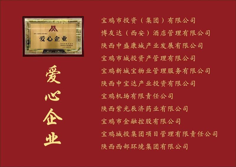 11月10日,“勇者正气 守护平安”宝鸡市见义勇为人物颁奖典礼在宝鸡大剧院举行。宝鸡市投资(集团)有限公司、宝鸡市城投资产管理有限公司、陕西中宝达产业投资有限公司、宝鸡机场有限责任公司、宝鸡新城宝物业管理服务有限公司、宝鸡市金融控股有限公司、陕西西部环境集团有限公司、陕西紫光辰济药业有限公司、宝鸡城投集团项目管理有限责任公司、博友达(西安)酒店管理有限公司、陕西中盛康城产业发展有限公司11家下属单位荣获宝鸡市见义勇为基金会颁发的“爱心企业”称号,集团党委工作部副部长罗祥伟获评“见义勇为好职工”。