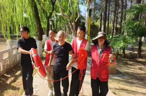 宝鸡人民公园的防内涝演练同样紧凑有序。模拟发布暴雨橙色预警后,公园办公室立即利用广播、电视显示屏等渠道发布防汛安全提示。保卫科组织游客有序疏散,模拟对落水的游客抛绳索和救生圈进行营救,紧急调运沙袋封堵配电室入口,避免配电室被淹。进行实时巡逻监控并封闭园内可能存在危险的区域,如湖边、低洼地段等设置警示线,防止游客靠近。经营科第一时间检查电路,对高空娱乐、大型游览装置进行检查,确保人员全部撤离后切断电源,防止漏电。绿化科及时清理堵塞排水口的树枝落叶等垃圾杂物。过程中,工作人员熟悉各项应急处置流程,实现了“零混乱、零意外”。
