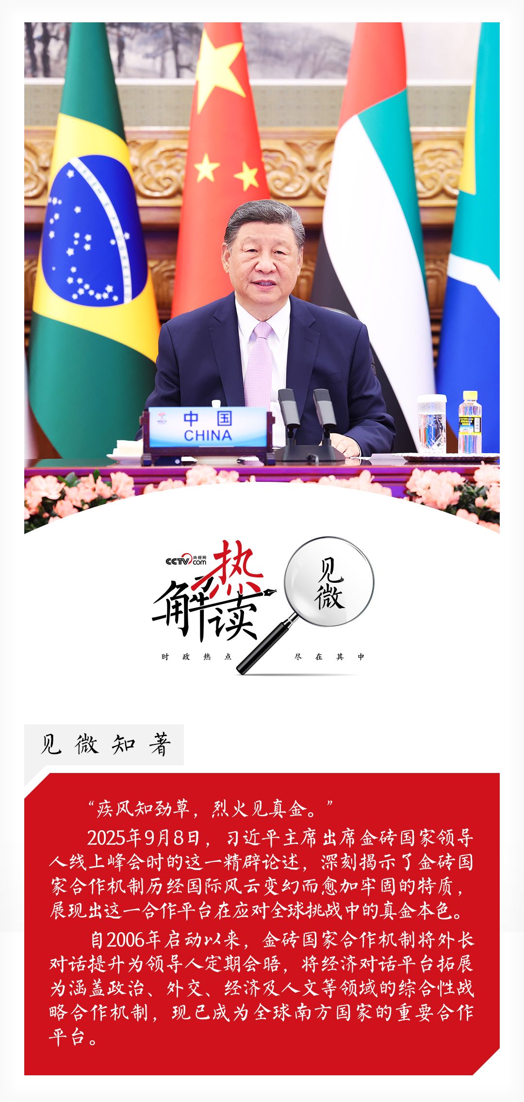 热解读 9月8日晚,习近平主席在北京以视频方式出席金砖国家领导人线上峰会并发表重要讲话。
