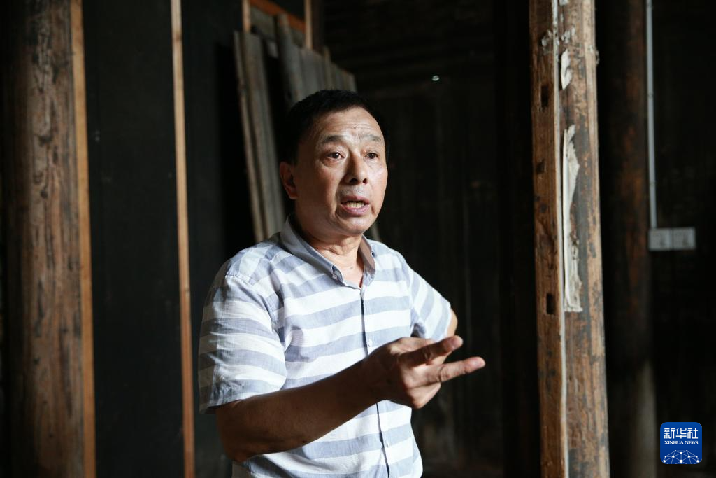 7月22日,陈汉乡综合文化站原站长洪述奇在梅家下屋接受记者采访。新华社记者 肖磊涛 摄