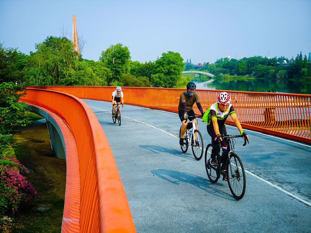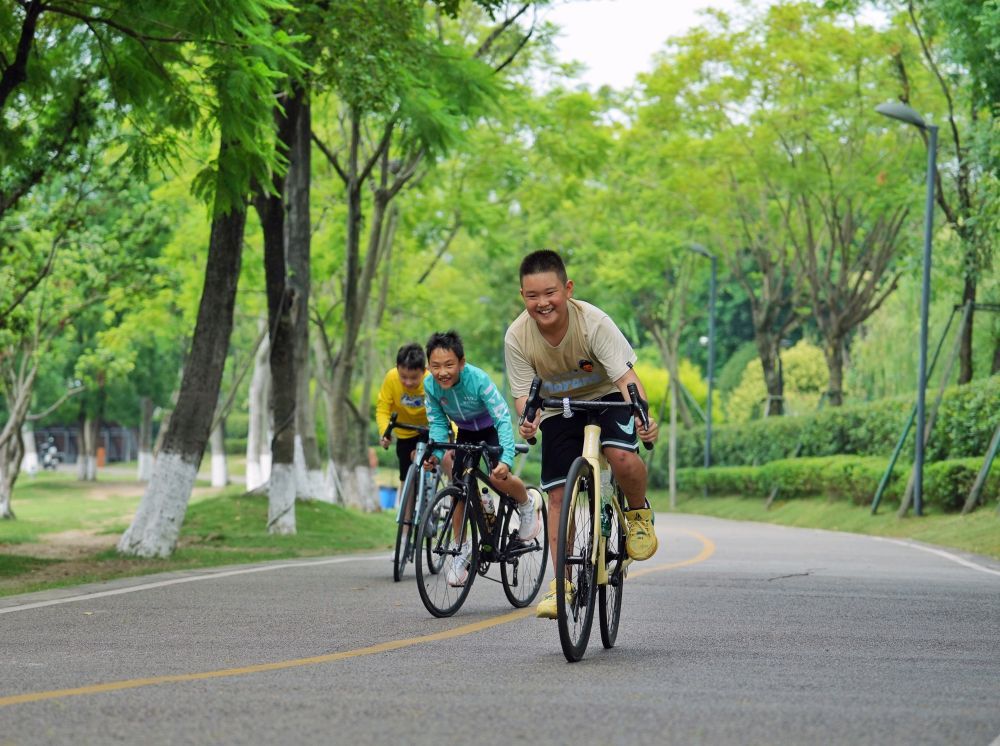2023年6月25日,市民在四川成都锦城湖公园绿道上骑行。近年来,随着成都承办的国际赛事越来越多,这座历史文化名城的体育设施也更加完善:东安湖体育公园、高新体育中心、凤凰山体育公园等新建场馆拔地而起;“桥下空间”、“屋顶空间”、“街旁空间”等等城市的“金角银边”也被建设为市民运动好去处。至2022年底,成都拥有体育场地设施6.41万个,已建成5000多公里长的天府绿道,植入体育设施1700多处。在建设“赛事名城”的目标下,一个个体育地标正在成为成都的新名片。