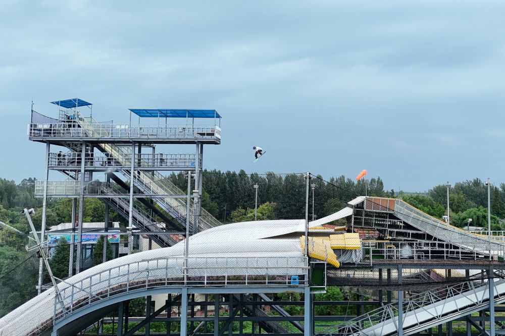 2024年8月9日,一名运动员在四川成都尖锋旱雪四季滑雪场训练。