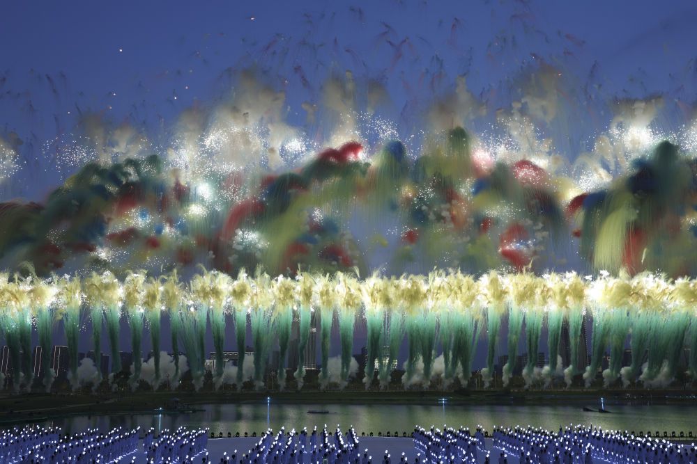 2025年8月7日在第12届世界运动会开幕式上拍摄的焰火表演。