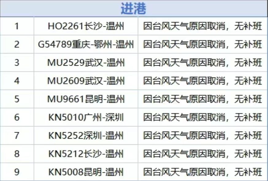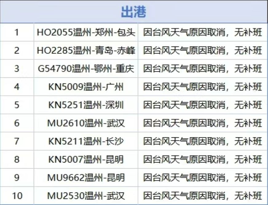受其影响,浙江省内多趟列车停运、多个航班取消,台州、温州、舟山等地涉山涉水景区关闭,同时省内多地加速进行危险地带人员转移安置工作,全力确保“不漏一人、应转尽转”。