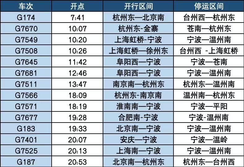 今天,铁路宁波站部分列车全线停运,部分车次区间停运。