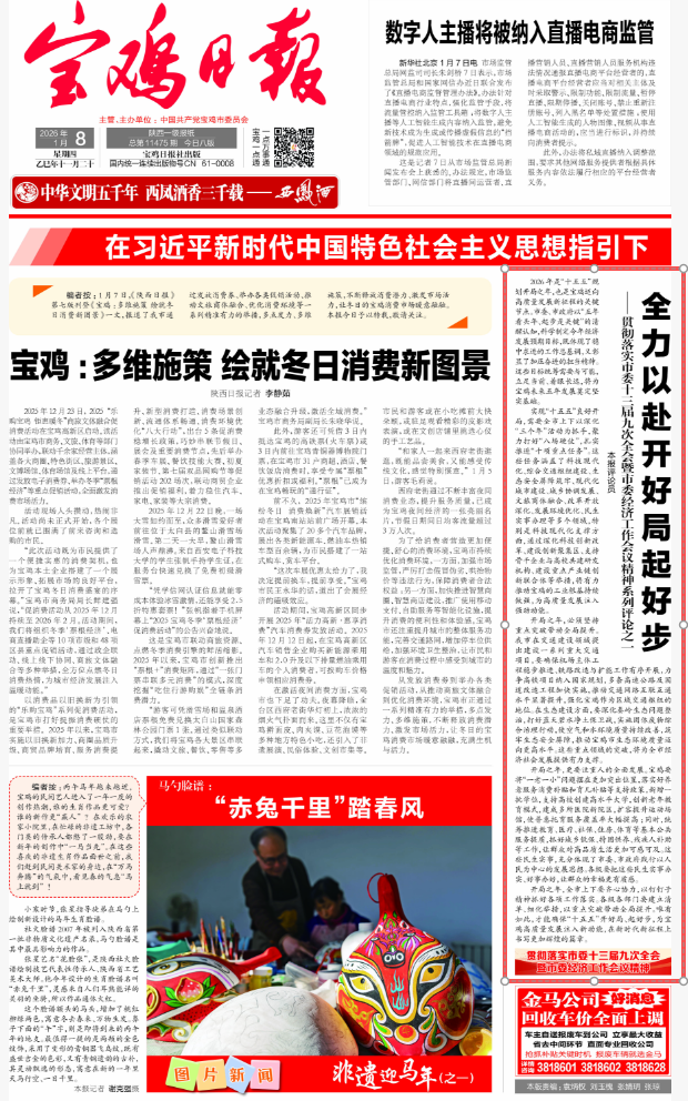 2026年是“十五五”规划开局之年,也是宝鸡迈向高质量发展新征程的关键节点。市委、市政府以“五年看头年、起步是关键”的清醒认知,科学制定今年经济发展预期目标,既体现了稳中求进的工作总基调,又彰显了加压奋进的担当精神。这些目标统筹需要与可能,立足当前、着眼长远,将为宝鸡未来五年发展奠定坚实基础。