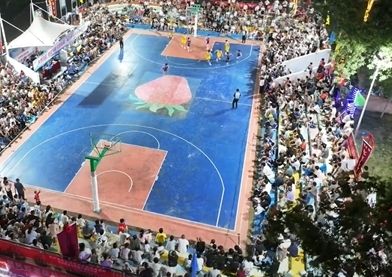 “村BA”带旺乡村“烟火气”。曾经入夜冷清的槐芽镇西站广场,如今因为有了篮球赛,每晚涌入6000余名观众,40多个摊位顺势铺开:烤肉香气弥漫,本地农户种植的瓜果香甜诱人,儿童游乐设施区笑声不断。单届赛事带动消费超10万元,线上直播更吸引20余万人次围观,“槐里小院”抖音号一夜走红。当篮球撞击声与扫码支付声交织,一条“赛事+夜市+文旅”的融合链条悄然成型,体育流量正转化为实实在在的乡村增量。
