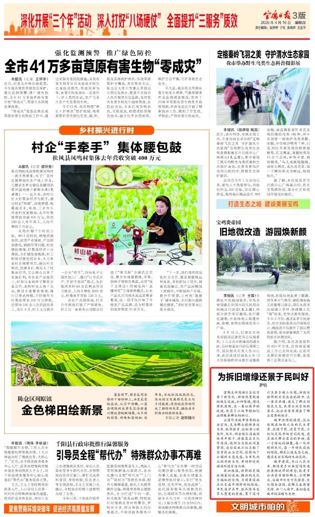 城市治理的温度,往往体现在细微之处的民生考量。还绿于民、还景于民,不仅仅是简单的空间改造,更是满足群众需求的举动。每一寸绿地的拓展,每一处环境的优化,每一件便民设施的增设,都是打造生态之城、建设美丽宝鸡的生动实践。