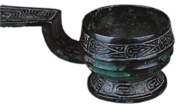 1976年,扶风县云塘青铜器窖藏出土了两件规格、形制几乎相同的青铜斗。斗是一种挹[yì]酒器,由一个小杯和一把长柄组成,用来从尊、壶等盛酒器中舀酒。然而,专家在清理泥土、去除锈蚀后发现,这两件斗的柄上带有铭文,连起来是:“白(伯)公父乍(作)金爵,用獻(献)用酌,用亯(享)用孝。”原来,早在铸造之初,这两件斗就已自名为金爵。后来,专家为了区分,在保留原名的基础上,将它们命名为伯公父勺。