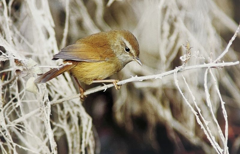 短翅树莺,雀形目莺科。前额和头顶鲜亮,贯眼纹褐色,头侧淡褐和黄白色相杂;尾羽暗褐色;颏、喉、腹部中央纯白色,胸、胁、尾下覆羽淡棕色。上嘴棕褐色,下嘴黄褐色;脚肉褐色。