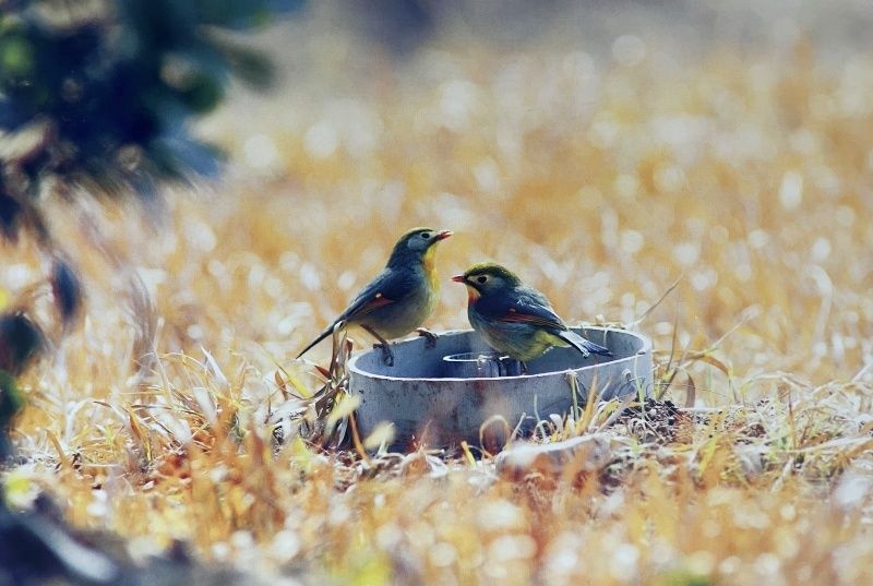 红嘴相思鸟,雀形目画眉科。有醒目的红嘴,上体橄榄绿色,眼周有黄斑,喉与腹黄色,胸橙黄色,尾近黑色,红、黄色翼斑特别明显。跗蹠[fū zhí]、趾暗黄色。